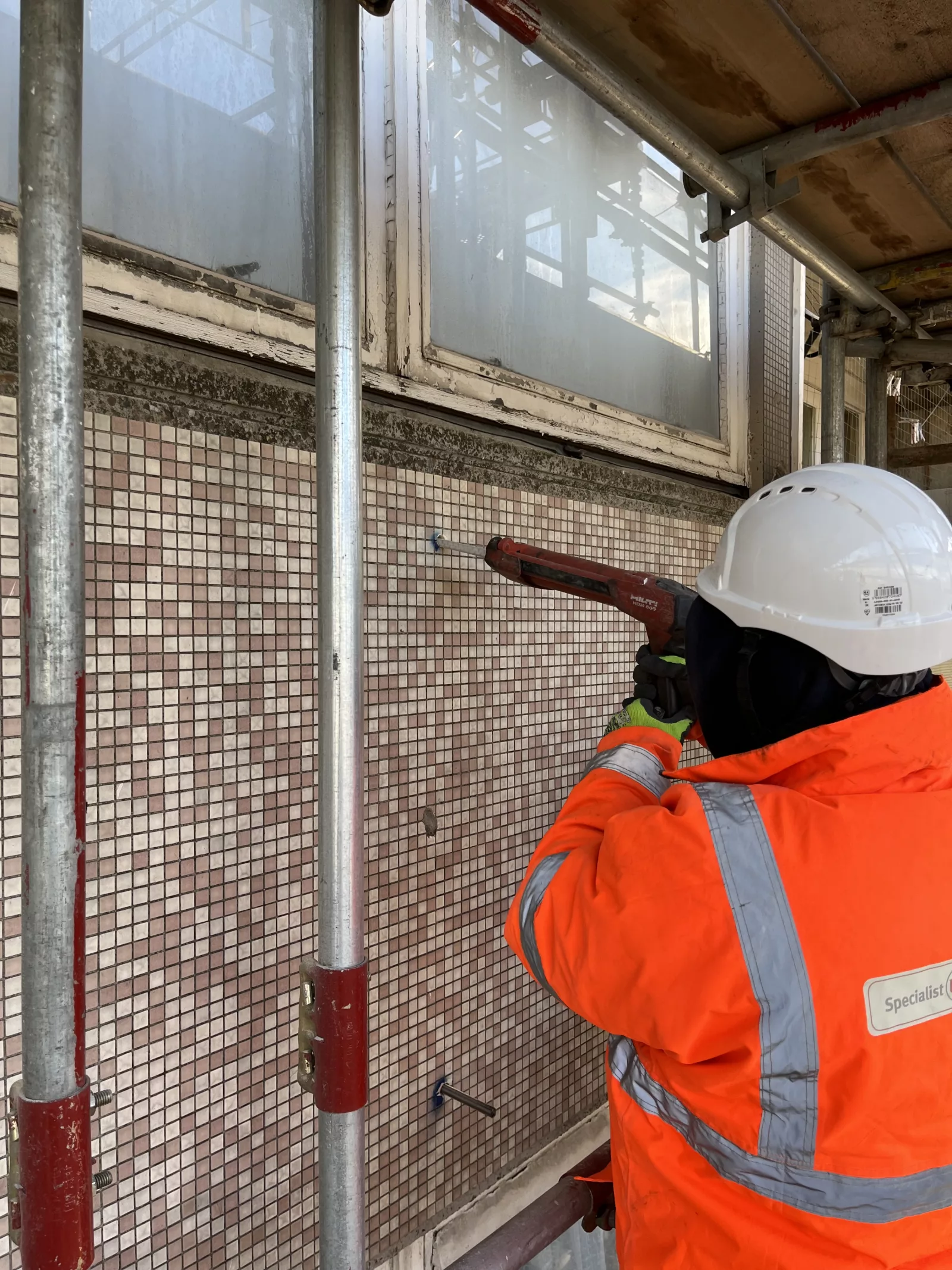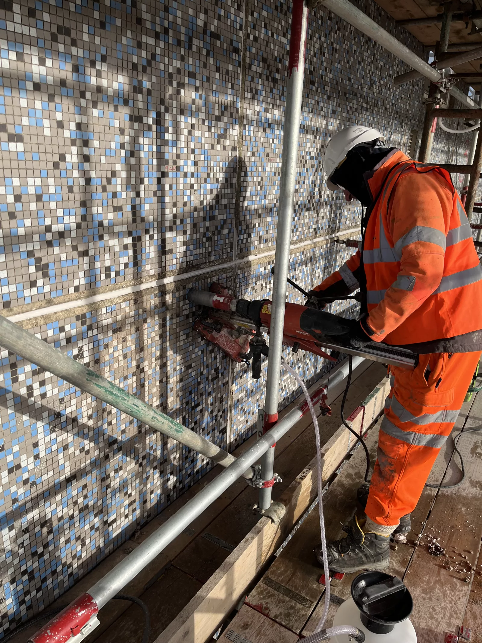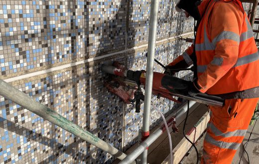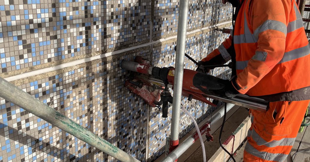 External works included core drilling, CCTV surveys, and the installation of 676 Helifix SockFix anchors to stabilise the structure, supported by targeted concrete repairs and roof-level strengthening. Internally, over 250 steel angles were installed for additional reinforcement, with all fixings tested to strict engineering specifications.