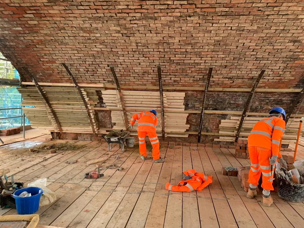 Constructed in the late 19th century, the 11-span brick and stone viaduct required extensive repairs to address spalling brickwork, open joints, and structural cracking. Works included re-casing over 640m² of defective masonry, crack stitching and resin injection, and lime repointing in accordance with Network Rail Standard Details.